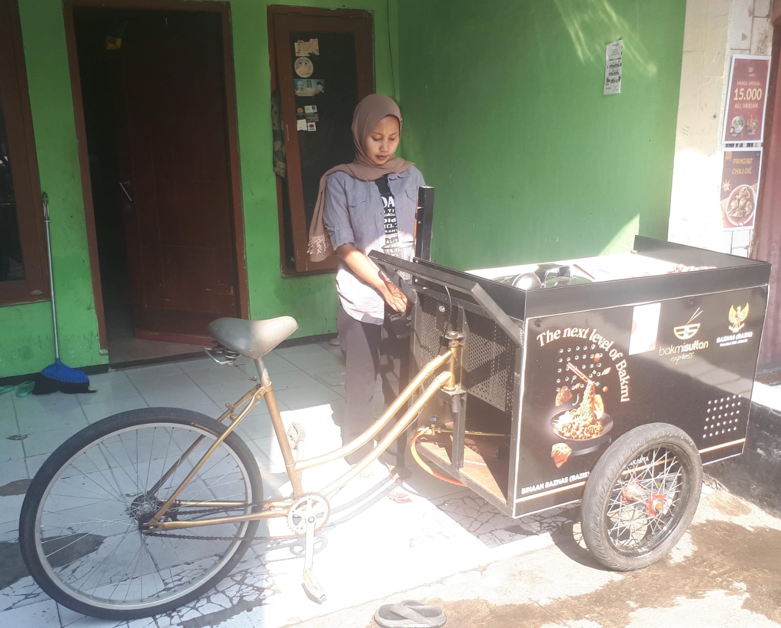 gerobak mienya Zahroh (26) kemenakannya.