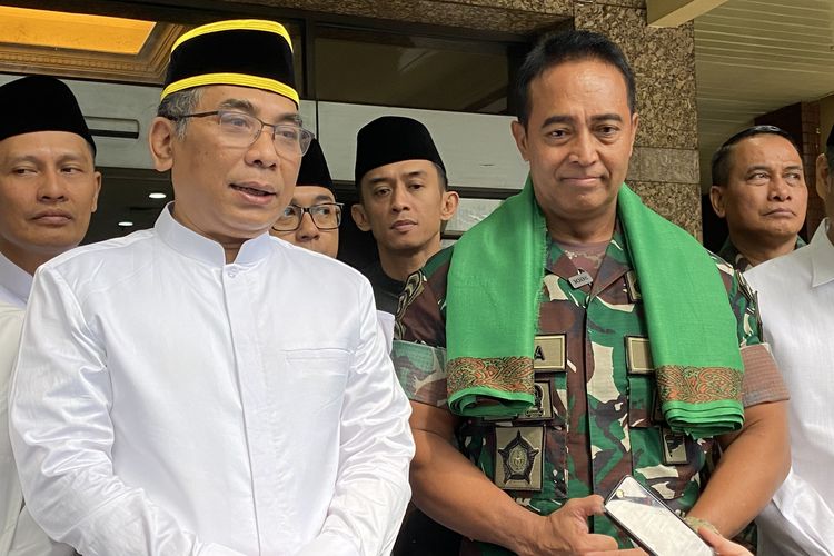 “Monggo (silakan), nanti kan sebentar lagi Panglima (TNI) juga akan mengumpulkan ulama juga,” ujar Gus Yahya usai menerima kunjungan Panglima TNI Jenderal Andika Perkasa di Kantor PBNU, Jakarta, Senin (23/5/2022). Andika pun tertawa mendengar selorohan Gus Yahya.