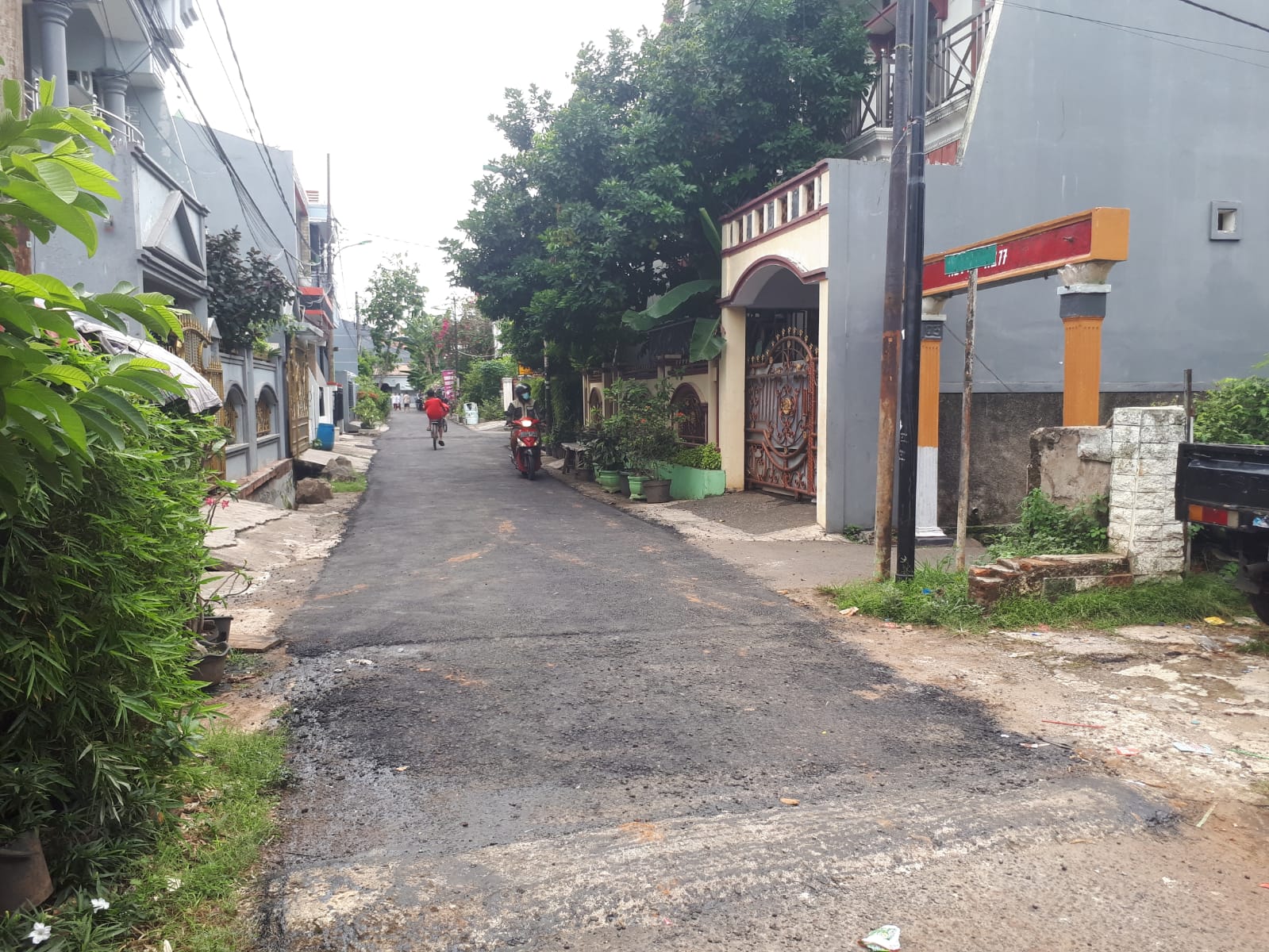 Ketua RW 03 Malaka Jaya, M Zainudin, Senin (21/11/2022) mengakui penebangan pohon dan pengaspalan jalan Nusa Indah VII telah selesai.