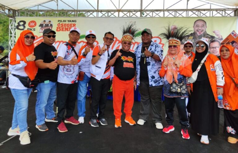 JAYAPURA (07/02/2024), AMUNISI.CO.ID – Partai Keadilan Sejahtera (PKS) Papua menggelar kampanye akbar dan senam bersama di Lapangan Karang PTC Entrop, Kota Jayapura, Selasa (6/2/2024) kemarin. Kampanye Akbar dan senam bersama dihadiri relawan dan simpatisan PKS baik dari Kota Jayapura, Kabupaten Jayapura, dan Kabupaten Keerom, mengenakan baju putih-orange sambil membawa bendera bertuliskan PKS nomor 8.