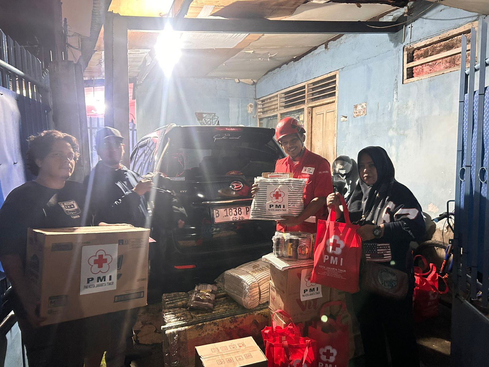 Petugas dari PMI Jakarta Timur yang mengantarkanya dua orang yaitu Joko Istanti dan Aditta Amran. “Mereka mengangkutnya dengan mobil box logistik dan dapur umum,” tambah Bastian.
