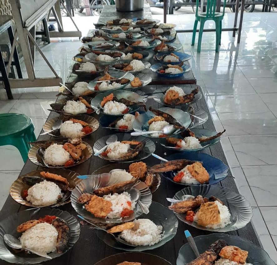 “Semua bahan dan beras dimasak di dapur oleh petugas masjid. Juga acara makan di depan kantor sekretsariat masjid di lantai bawah. Yang kami sediakan sekitar 80 an porsi. Itu semua diurus seksi sosial yang diketuai Pak Haji Nizar,” kata H Budi Supeno, Selasa (2/12/2025).