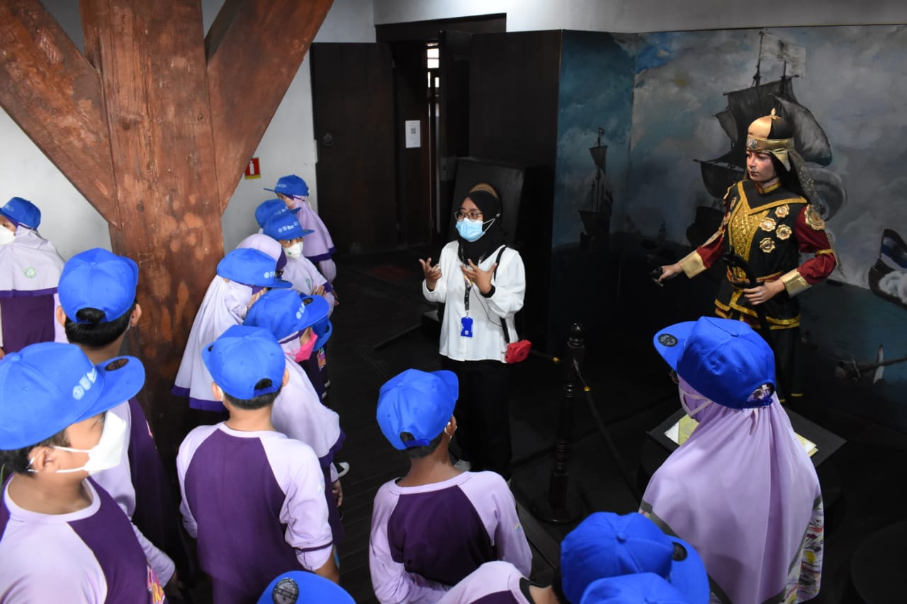 Mereka dipandu untuk mengamati berbagai koleksi yang tak kalah menarik dengan sejarah panjangnya. Di antaranya diorama tokoh tokoh kebaharian Indonesia dan penjelajah dunia di lantai atas Gedung A.Tokoh dalam diorama tersebut antara lain Laksamana Malahayati, James Cook, Marcopolo, Ibnu Batuta, dan Cheng Ho. Ada satu kamar khusus berisi sekitar 20-an karung beragam jenis rempah rempah.