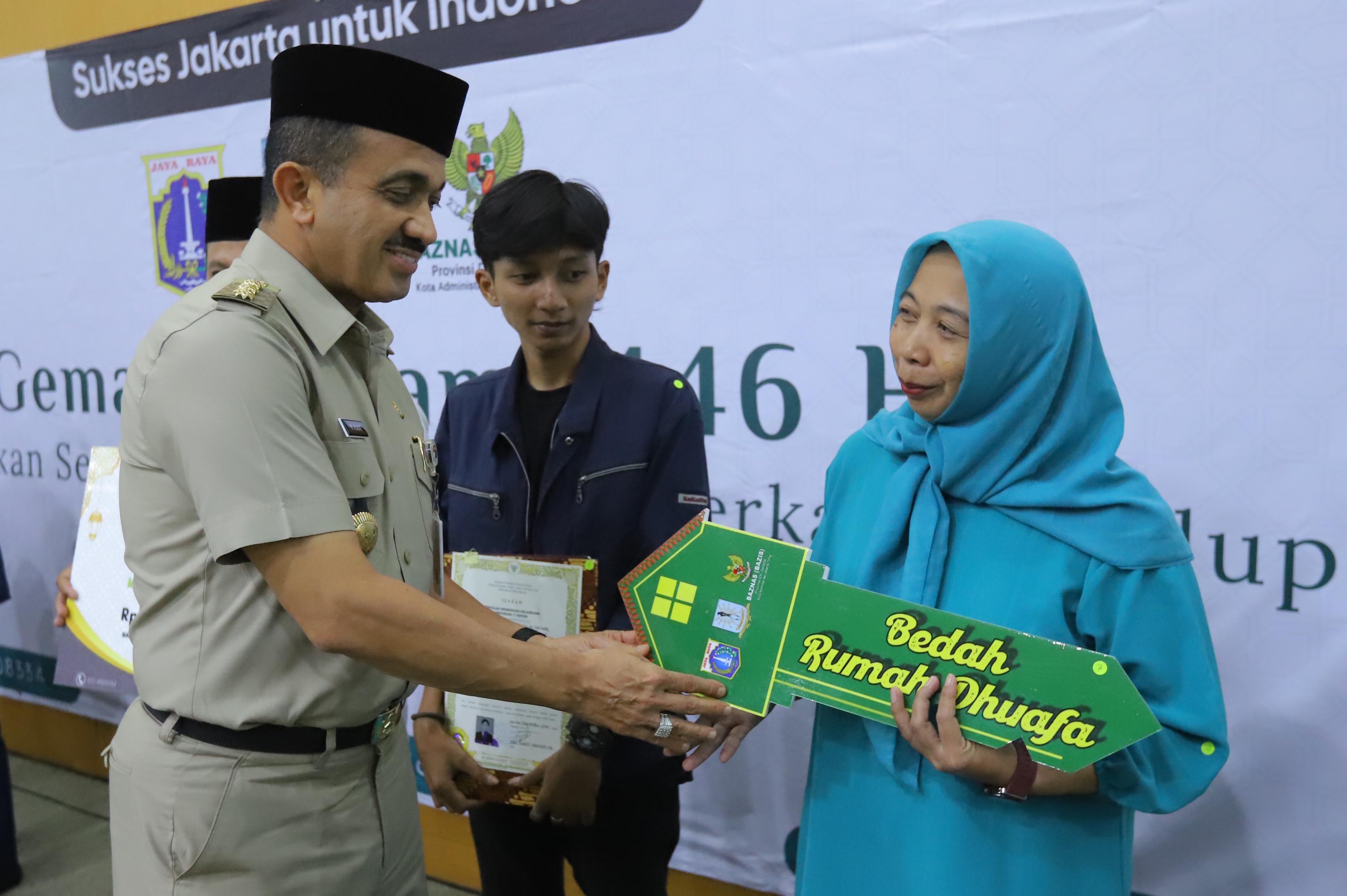 Pada kesempatan itu Pinah, warga RT 004 RW 012 Kelurahan Kelapa Dua Wetan, Kecamatan Ciracas menjadi salah seorang penerima manfaat bedah rumah dan secara simbolis menerima kunci rumahnya dari Wali Kota Anwar.